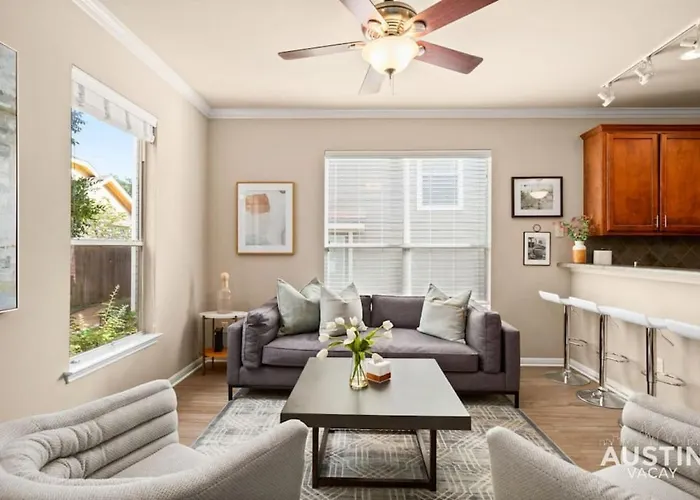 La villa Spectacular Neighborhood Spacious House And Yard, de 79 m^2, ofrece alojamiento en Austin, a unos 2 km del Capitolio de Texas y a tan solo 550 metros del Sheeks-Robertson House. Esta villa cuenta con habitaciones con una mesa de trabajo, servicio de tetera/cafetera y TV.